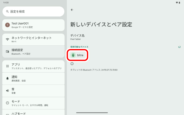 6) 「使用可能なデバイス」の「bitra」をタップします。