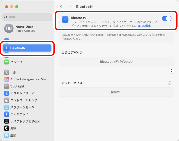 以下はインテル®社製のBluetooth機能が搭載されている場合の手順を説明します。
