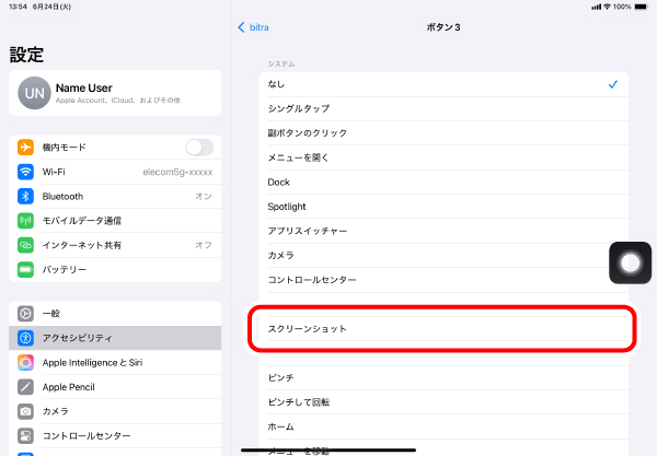 ※「ボタン3」に「スクリーンショット」を割り当てる場合