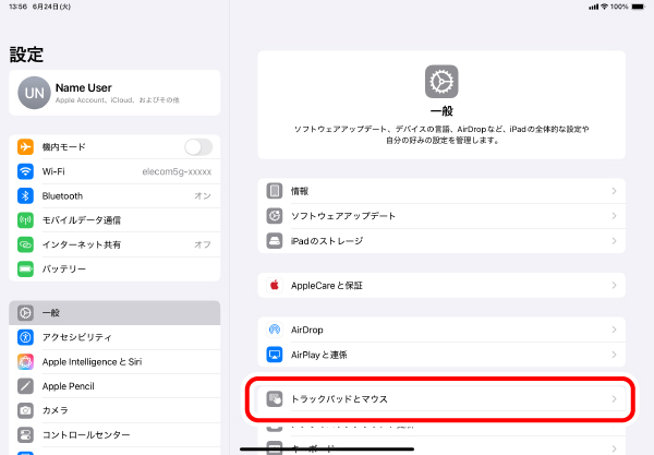 2) 「トラックパッドとマウス」をタップします。