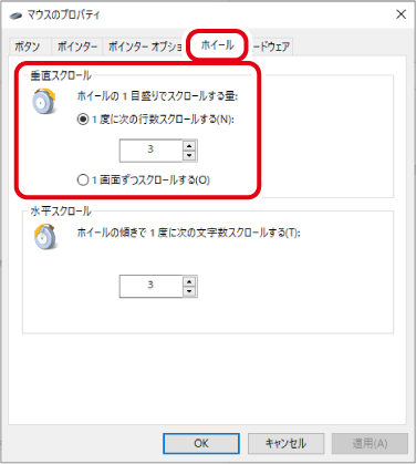 4) 本製品の「制御付きスクロール」が無効の場合、クリックし、有効にします。
