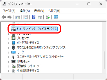 2) 「ヒューマンインターフェイスデバイス」をクリックします。