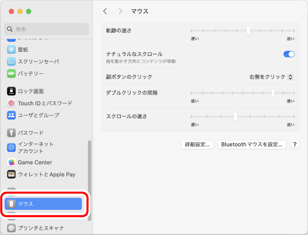「ナチュラルなスクロール」をオフにすると、従来通りの上下スクロール⽅向になります。