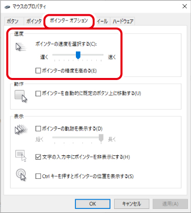 マウスポインターの移動速度が速すぎるか遅すぎる場合、パソコン側でマウスポインターの移動速度を調整できます。