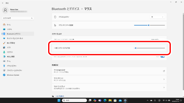 3) 「一度にスクロールする行数」のスライドバーでスクロールする行数を調整します。