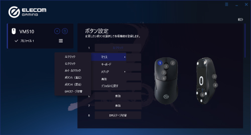 詳しくは、「ELECOM GAMING Tool(EG Tool)で設定する」-「ボタンの機能を設定する」をご覧ください。