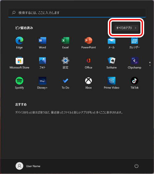 2) [すべてのアプリ]をクリックします。