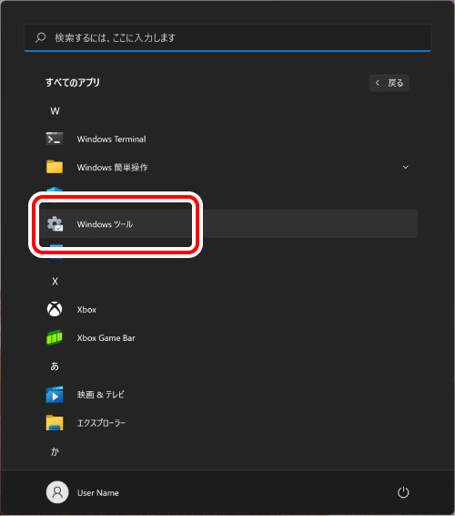 「Windows ツール」画面が表示されます。