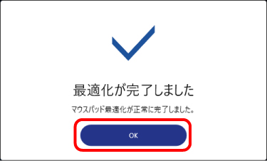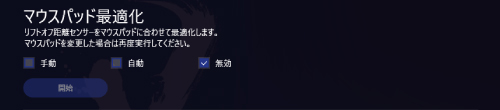 マウスパッド最適化はデフォルトでは「無効」に設定されています。最適化をするときは「手動」または「自動」をクリックしてチェックボックスをオンにしてください。