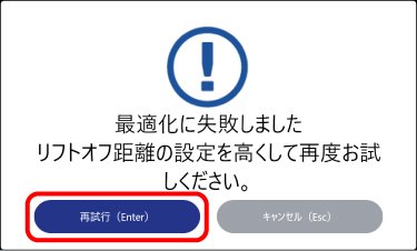 リフトオフ距離を高く設定し、[再試行]ボタンを押して最適化を再度実行してください。