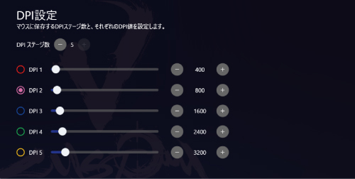 DPIステージ数ごとにDPIを設定できます。各DPIステージの横の