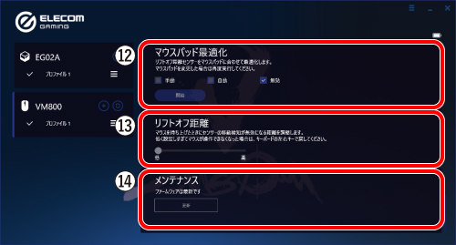 リフトオフ距離センサーをマウスパッドに合わせて最適化します。
