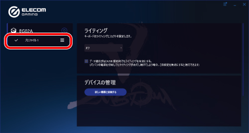 3) 新しく作成したプロファイル名が、プロファイル設定部に表示されます。