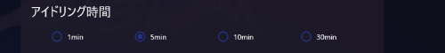 マウスのアイドリング時間を設定します。時間を長く設定すると、マウスが無操作時にスリープ状態になるまでの時間を遅らせることができます。