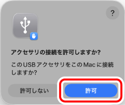 2) 「アクセサリの接続を許可しますか?」のメッセージが表示されたら「許可」をクリックします。