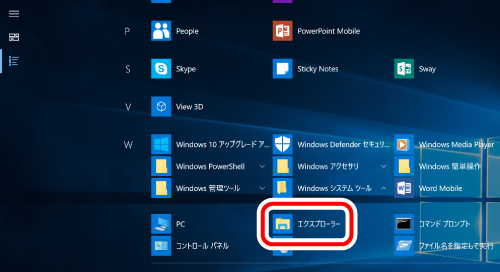 1) 次のA)、B)、C)、D)いずれかの方法で、「エクスプローラー」を起動します。