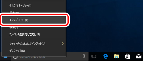D) 「スタート」ボタンを右クリックし、「エクスプローラー」をクリックします。