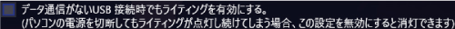 ●「データ通信がないUSB接続時でもライティングを有効にする。」チェックボックス