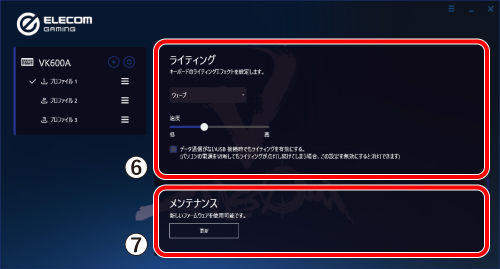 また、メモリ番号を設定されたプロファイルはキーボード本体に記憶され、EG toolをインストールしていないPCに接続しても、プロファイルを設定した状態で使用することができます。