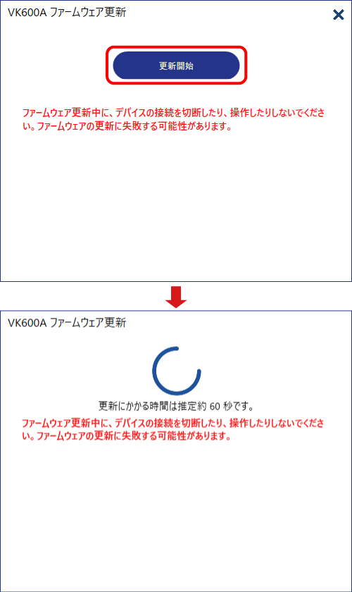 3) 更新画面で[更新開始]をクリックします。