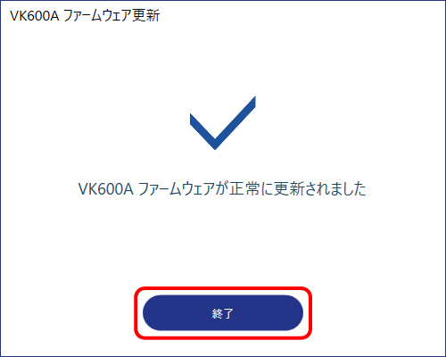 4) 更新完了画面で、[終了]をクリックします。
