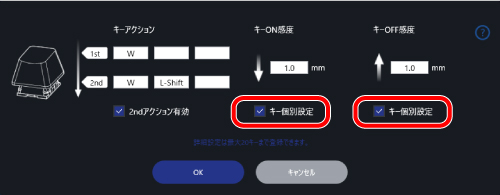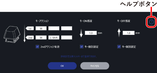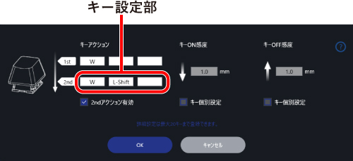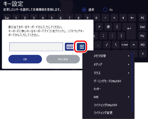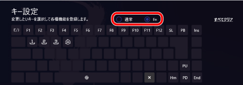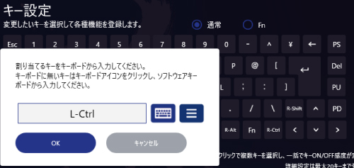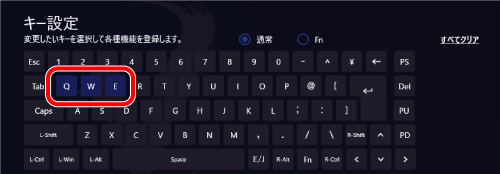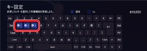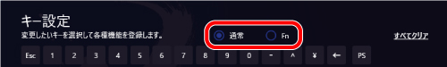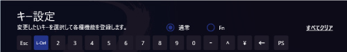 を押しながら他のキーを押すことで、キー設定画面で登録した機能を使用できます。