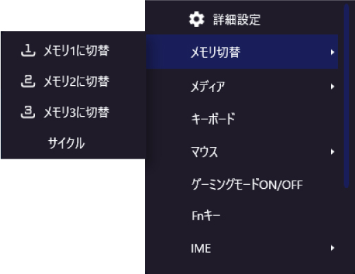 キーを押す度にメモリ番号を設定したプロファイルに順番に切り替えることができます。