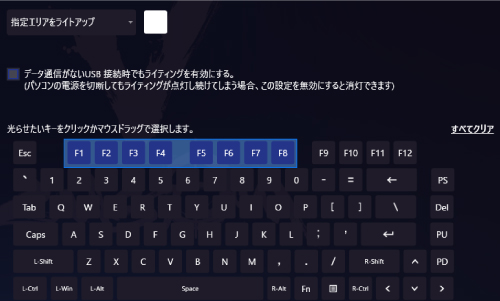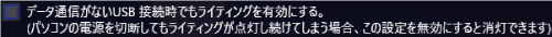 接続したパソコンをシャットダウンやスリープ状態にしたときに意図せずライティングが動作してしまう場合はチェックを外してください。