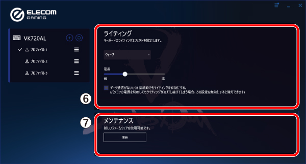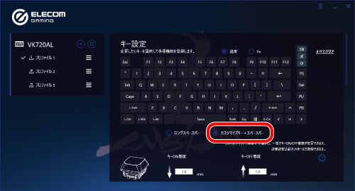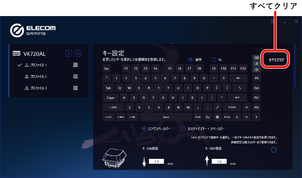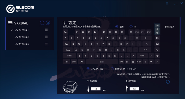 また、メモリ番号を設定されたプロファイルはキーボード本体に記憶され、EG Toolをインストールしていないパソコンに接続しても、プロファイルを設定した状態で使用することができます。