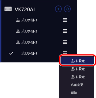 1) 変更したいプロファイル名のをクリックし、「名前変更」を選択します。