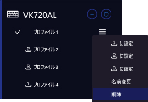 1) 削除したいプロファイル名のをクリックし、「削除」を選択します。