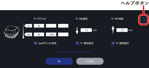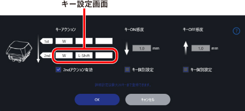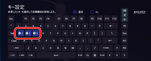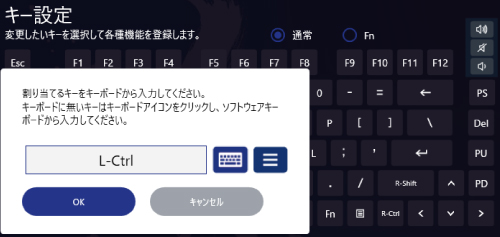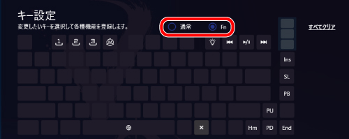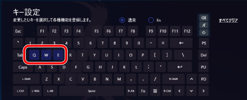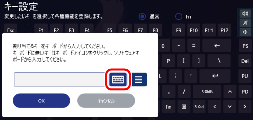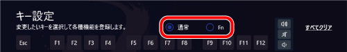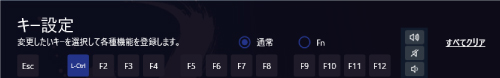 を押しながら他のキーを押すことで、キー設定画面で登録した機能を使用できます。