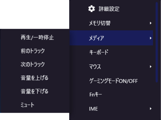 ※初期状態ではメモリ切替やLEDライトのON/OFFなどの各種機能が動作します。詳しくは「ELECOM GAMINGTool(EG Tool)で設定する」-「キーの機能を設定する」をご覧ください。