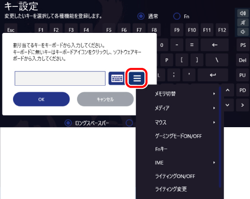 変換、無変換キーなど日本語入力特有のキーを登録するには、以下の手順で日本語入力に切り替えてください。