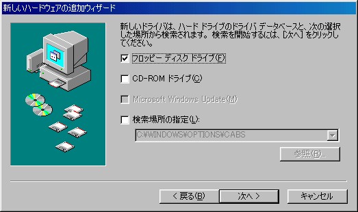 - フロッピーディスクドライブにドライバフロッピーを入れます。